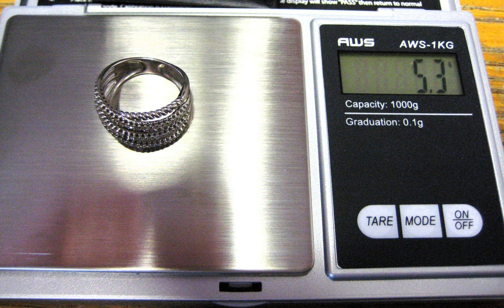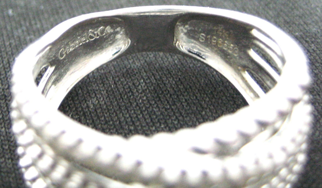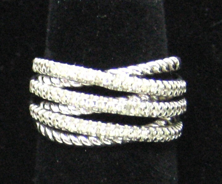 Ring 0.6ctw Diamond 14k White Gold Layered Criss Cros Wide Band SZ.6 Gabriel Co