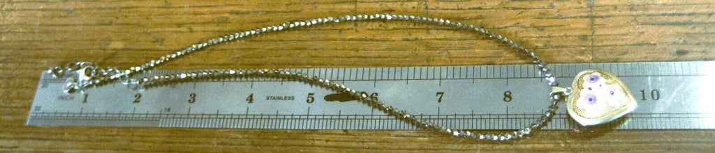 Vintage Sterling Silver Necklace Ceramic Inlaid on Mesh Hart w/ Resin 18" Chain
