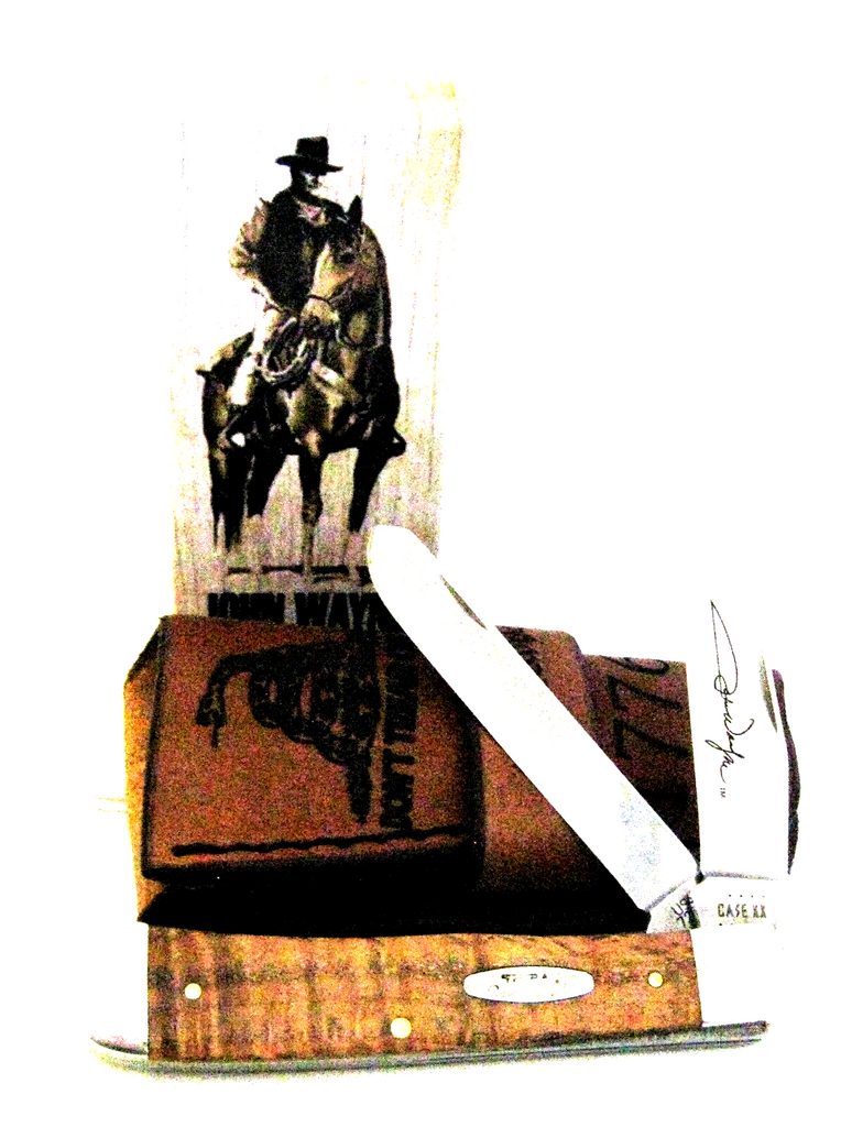 John Wayne Case Knife USA Natural Curly Oak 10703 Smooth Trapper Duke! & sheath