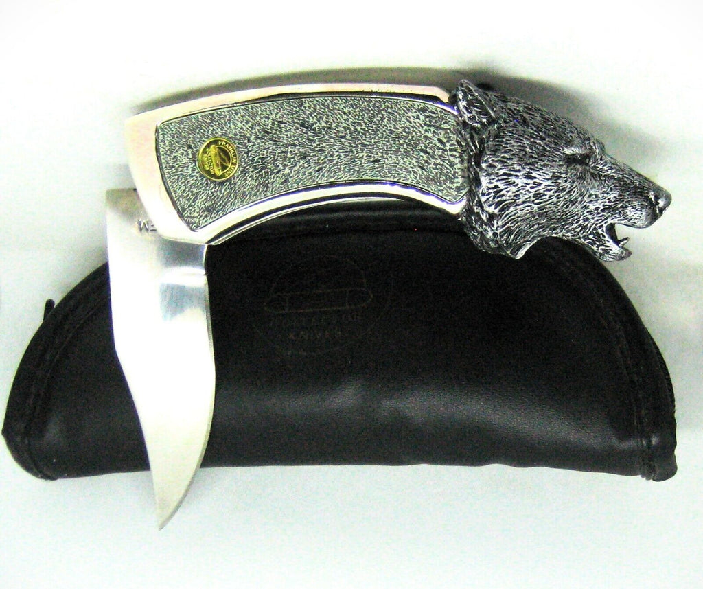 *NOS Vintage 1980s Franklin Mint USA Howling Moon Wolf New Knife & pouch