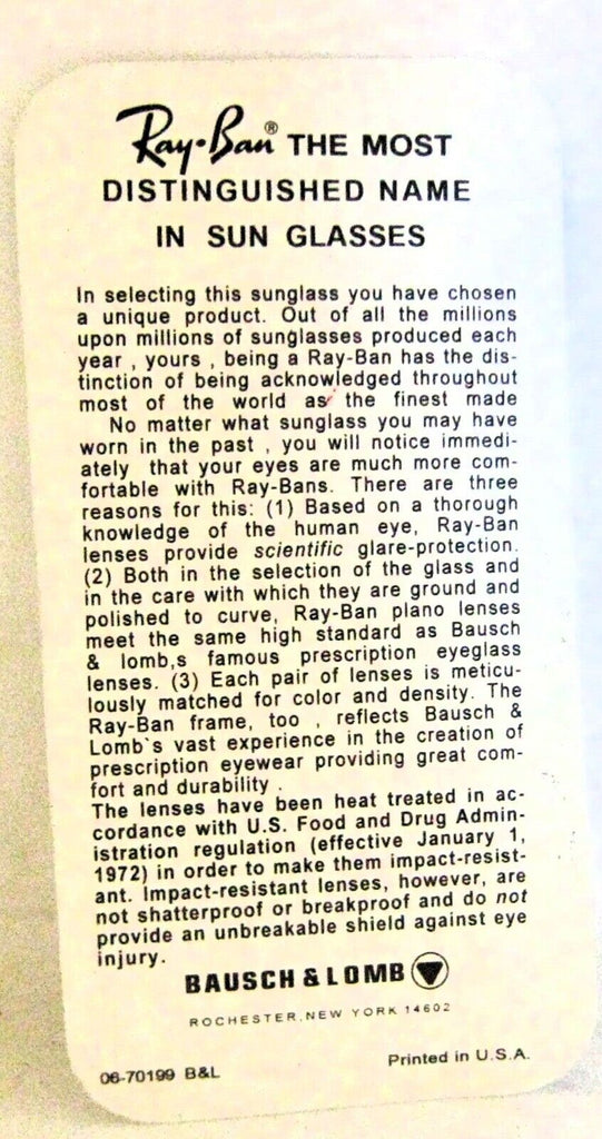 *NOS Rare Ray-Ban USA by Bausch & Lomb "Diamond Hard" Aviator W1507